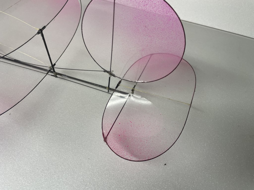Importante è che le unioni dei tondini che supportano l’ala siano irrobustiti da una legatura di filo di kevlar cosparsa di ciano.
