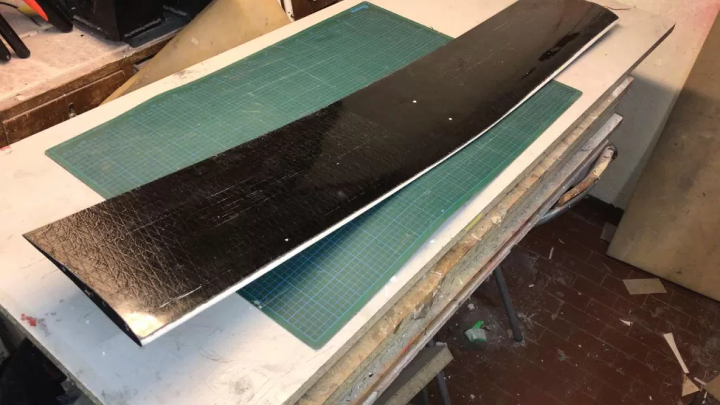 Il sistema che ho seguito è molto semplice: ho realizzato una culla in polistirolo con la forma curva che desideravo ottenere ed ho poi appoggiato il bocco che conteneva l’ala rivestita con le due controsagome sulla culla e naturalmente controculla ed ho messo il tutto sotto pressione.